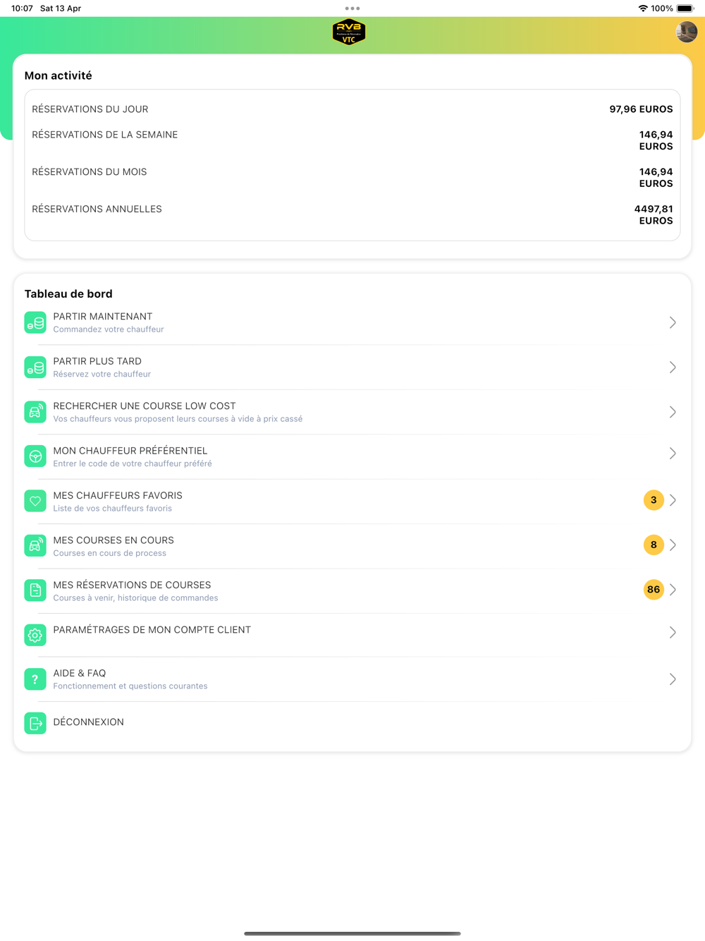 Bienvenue chez RVB, où chaque course transcende vos attentes. Nous avons méticuleusement conçu notre application en pensant à vous, les clients, désireux d’une expérience de transport VTC à la fois fluide, confortable, et adaptée à vos besoins spécifiques. RVB n'est pas simplement une application de plus dans l'univers VTC ; c'est une promesse de service, de choix, et de qualité inégalée.