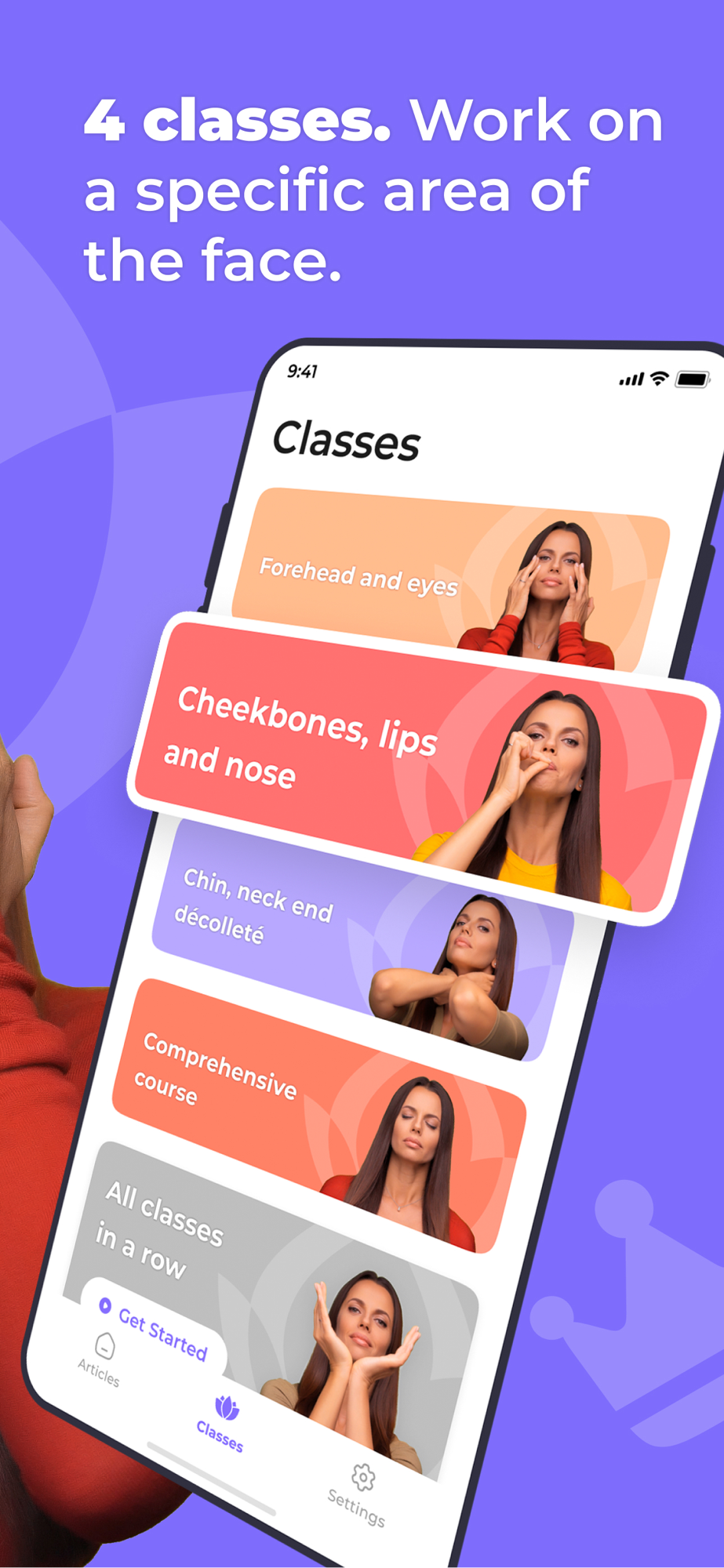 The classes are divided into 4 groups, each targeting a specific area of the face and neck.