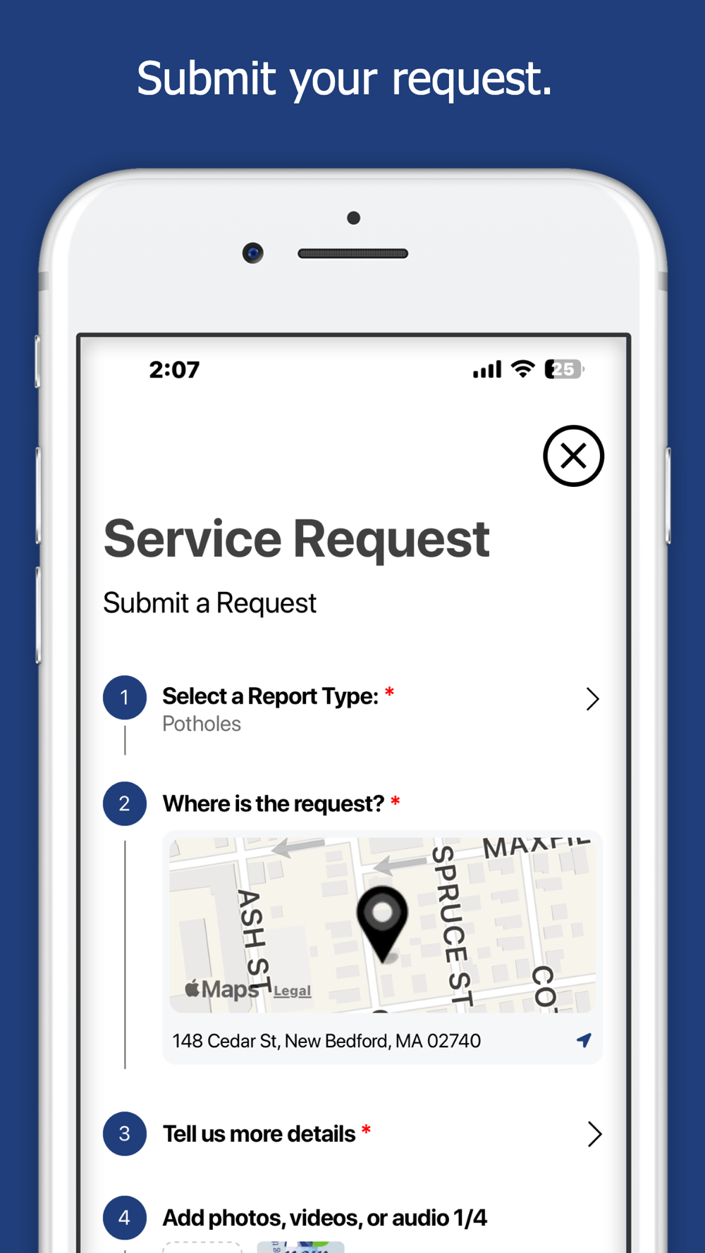 The New Bedford 311 app, also known as NB Connected allows residents and visitors to report non-emergency issues to the city, such as potholes, graffiti, trash, and tree trim requests. Reports are automatically entered into the City’s work order system and allow users to track their request as well as other requests throughout the City.