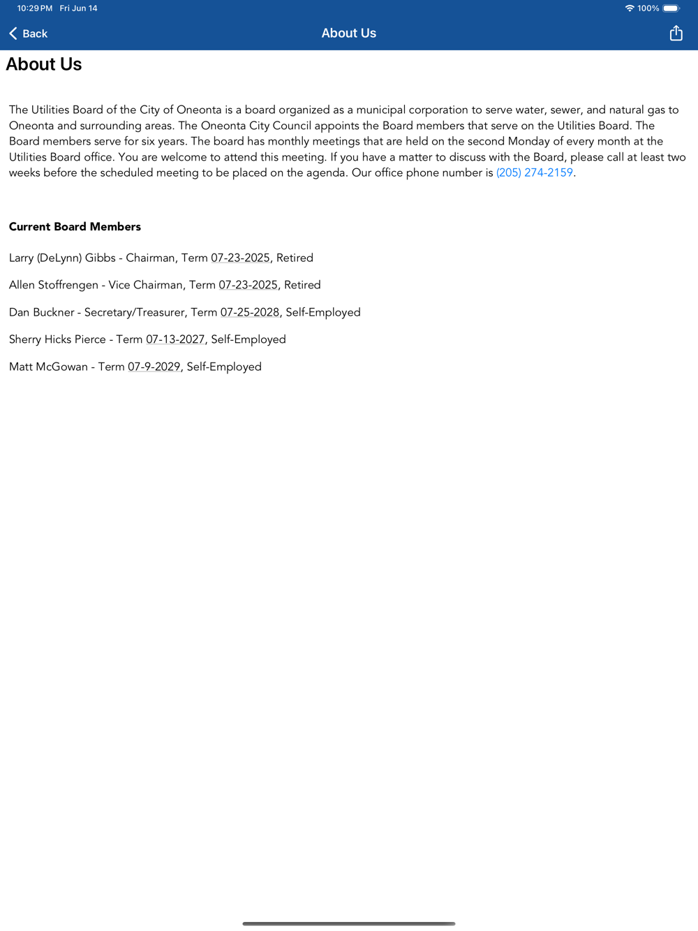 ~ Utilities Board of the City of Oneonta Alabama