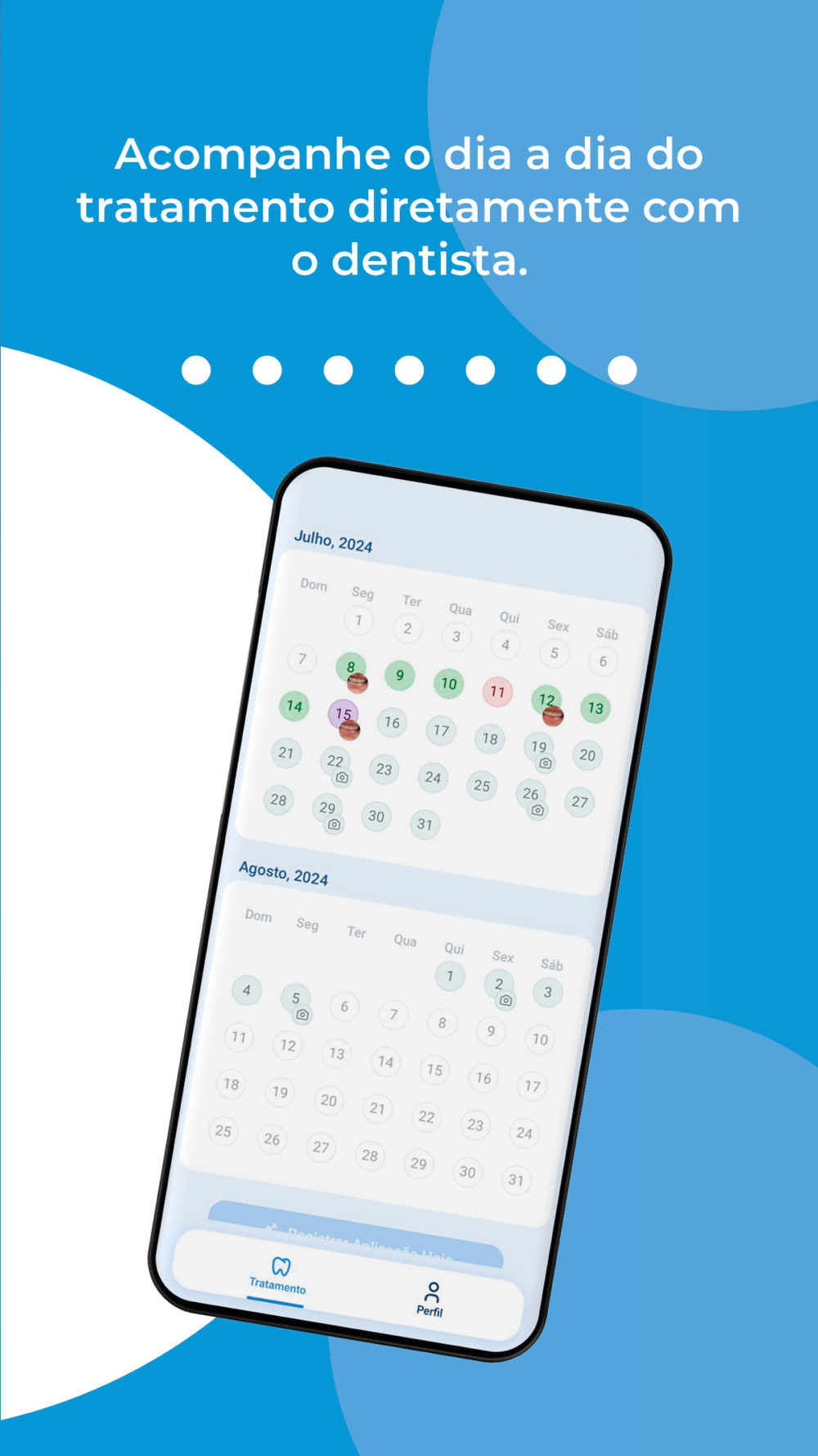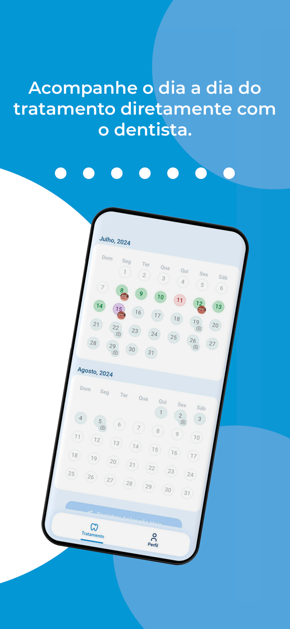 Nosso app permite que você acompanhe a evolução do seu tratamento junto com seu dentista usual, tudo de maneira prática e organizada.
