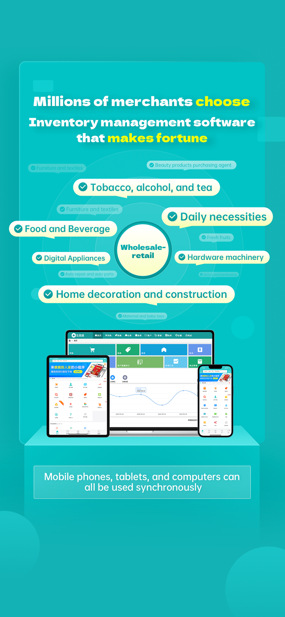 Support full platform systems for computers, tablets, and mobile phones, with real-time data synchronization in the cloud, truly achieving cloud based inventory management