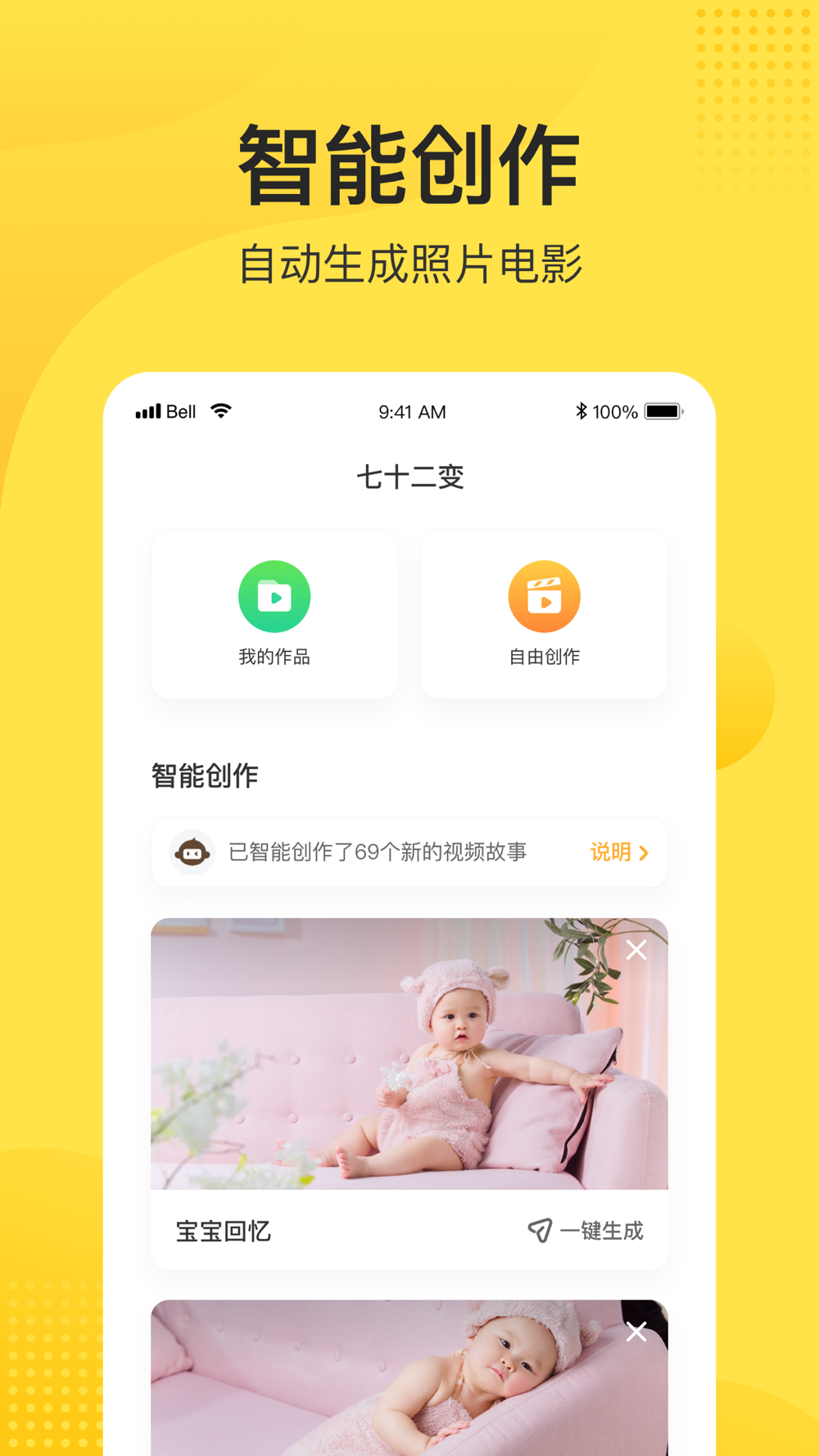 6、智能创作,AI场景识别技术将照片视频按地点与时间等维度自动创作,一键即生成音乐视频。