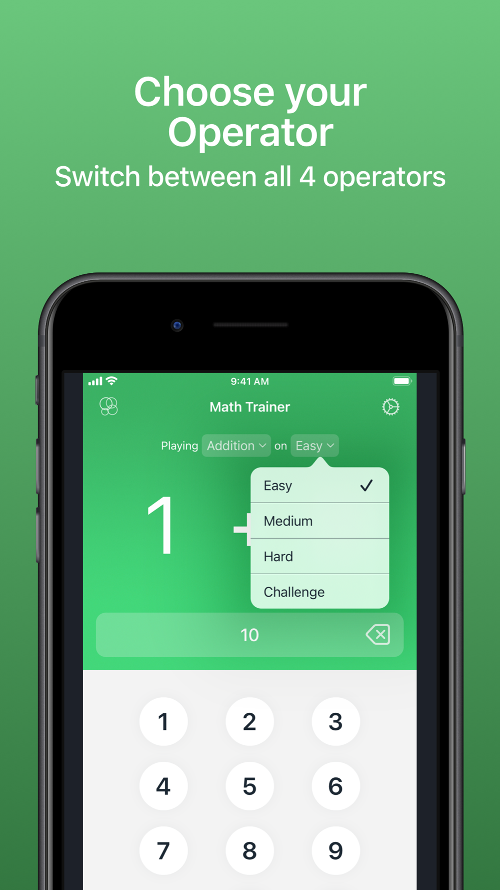 Math Trainer, a quick and easy way to improve your mental arithmetic. Add, Subtract, Divide and Multiply through 10 quick fire questions with four difficulties.