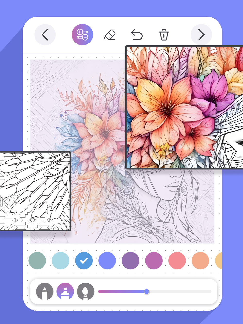 Explore a vast collection of mandala pages and digital painting pictures, all beautifully designed to help you relax and find your zen. Our app includes various categories of coloring book so you can always find something that inspires you.