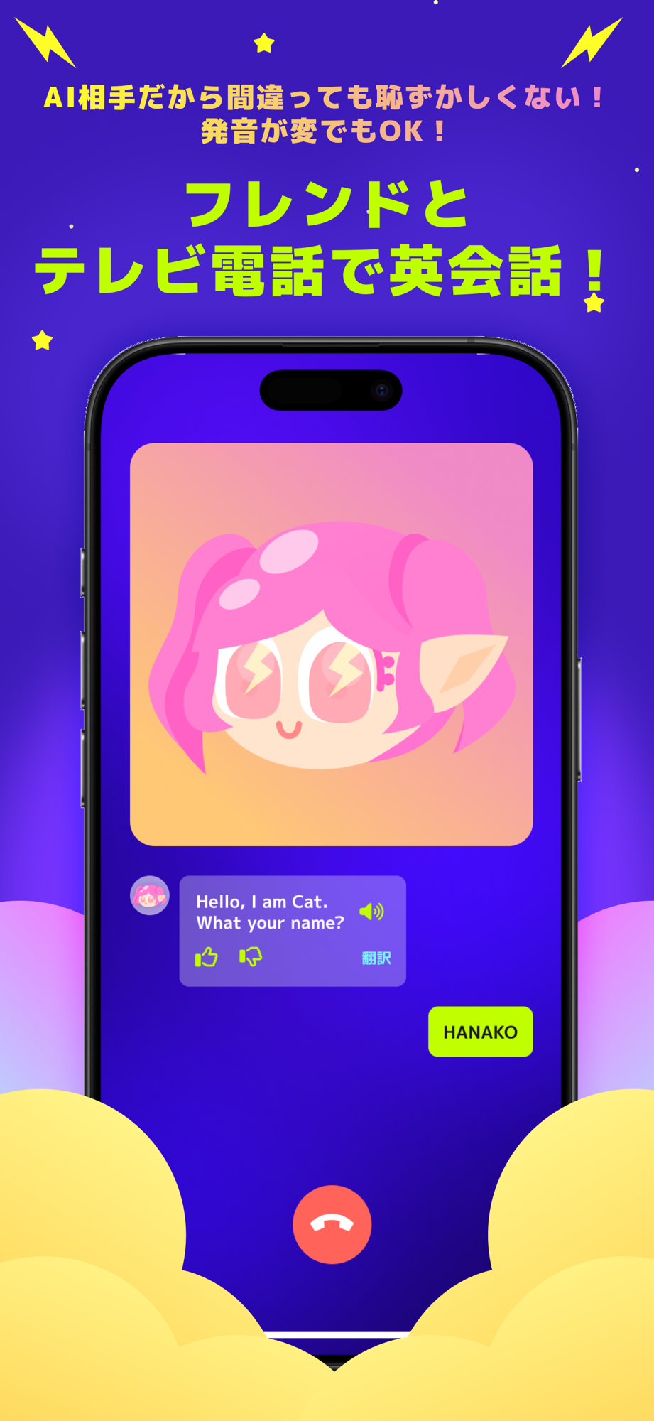 Practice anytime without worrying about grammar or pronunciation mistakes. Learn natural phrases through real conversations, enjoy game-like experiences with cute characters, and study at your own pace.