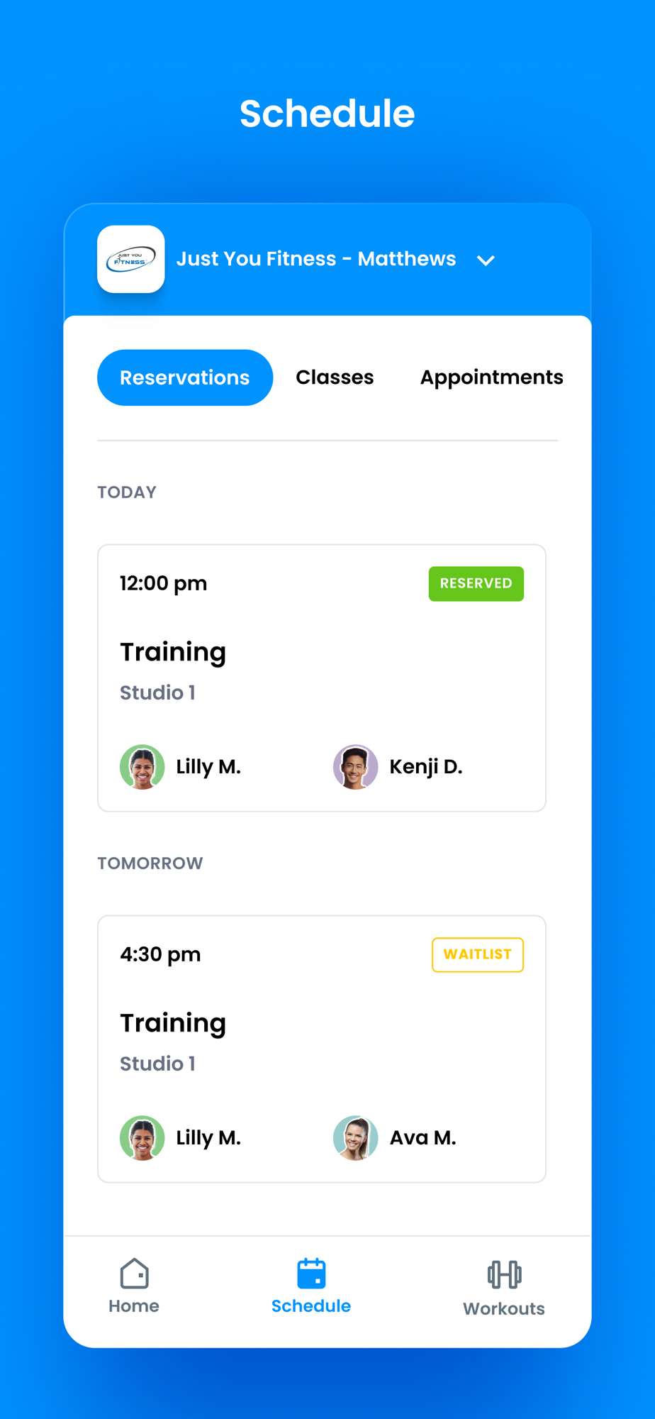 For members of Just You Fitness to reserve their place in a class, sign up for gym events, and general account management like updating headshots and credit card on file.