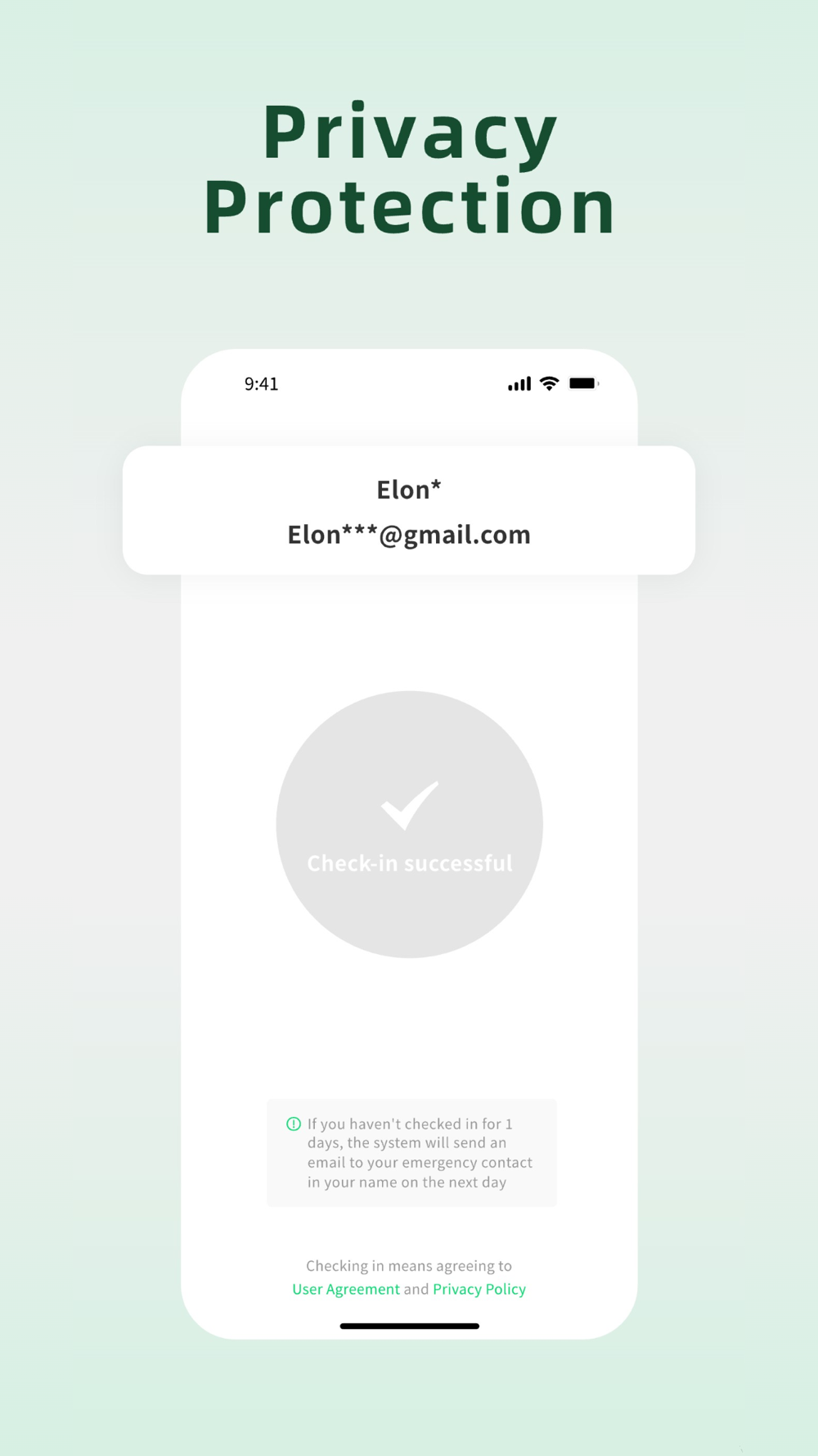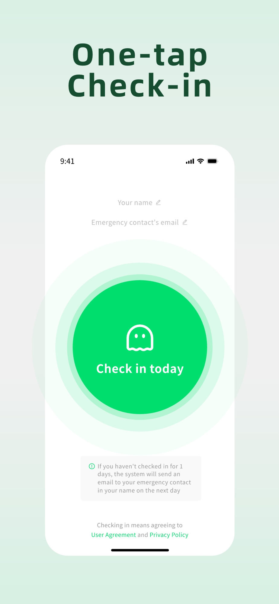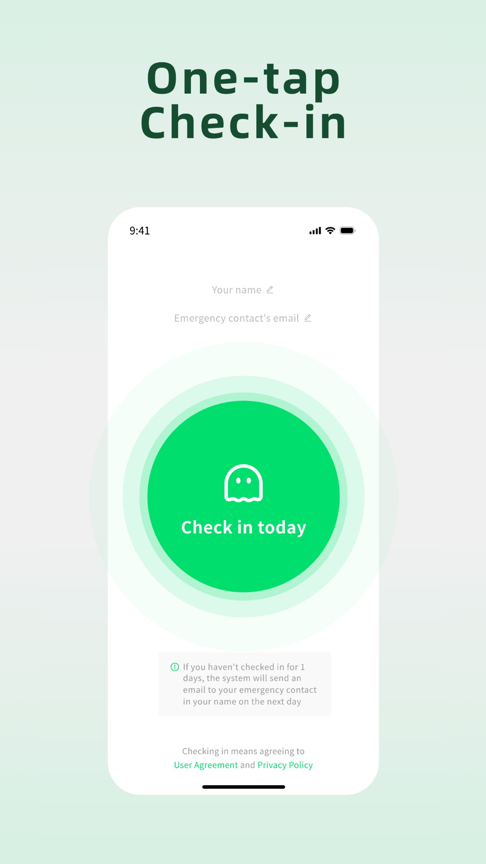 No registration or login required. Simply enter the contact’s name and email to complete setup on first use. Tap to check in daily, with the background automatically monitoring your status without disturbing daily routines to ensure easy and convenient operation
