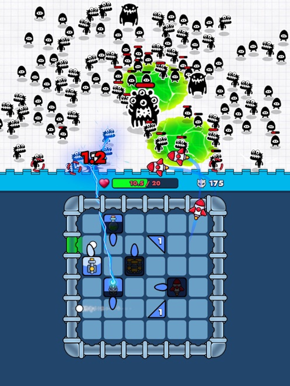 • 成长体系:解锁强力武器/弹射器与升级项强化防线