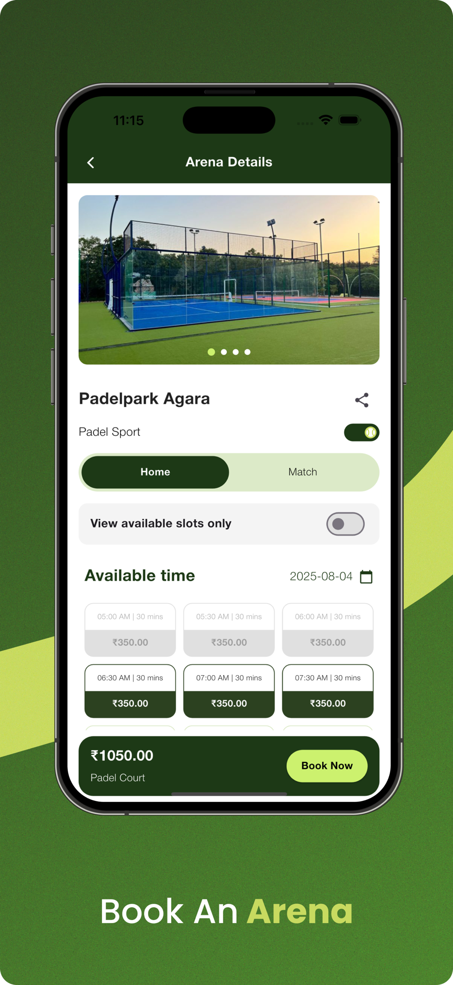 - Seamless Court Booking: Browse available slots at nearby arenas and book instantly — no calls or coordination needed.