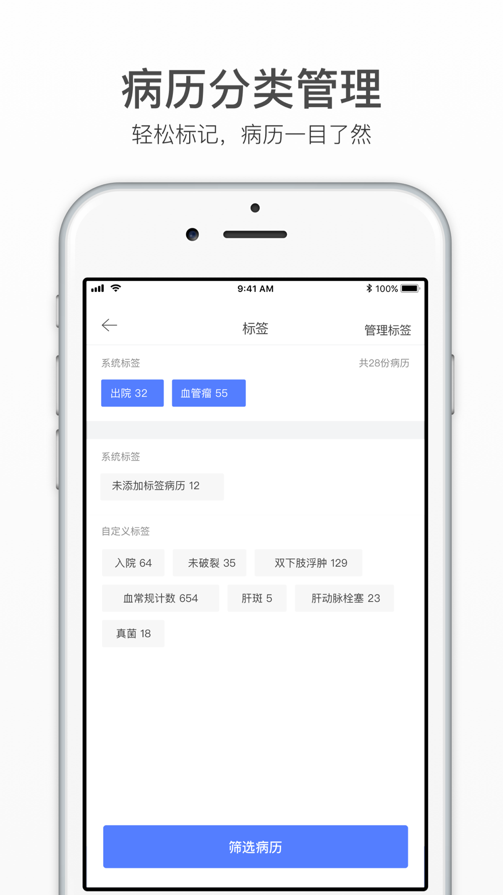 不再为繁冗的病历和低效的医患沟通所烦恼。随时随地,从病历到病人的全程智能管理,病历夹经典版帮你实现。