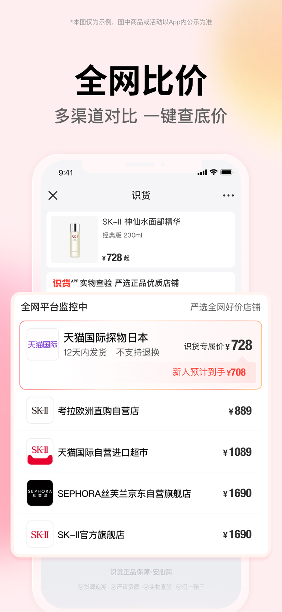 对于主流商品从外包到内部细节进行鉴别,提供专业鉴别结论,助你网购商品练就火眼金睛。识货收录的合作店铺均支持识货鉴别服务。