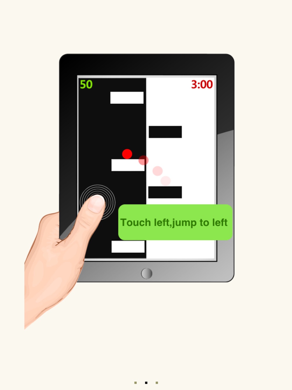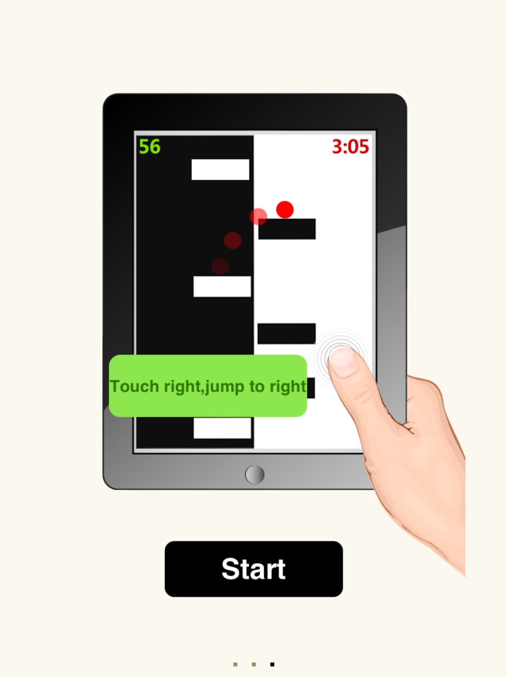 It is better to taps in two hands, the left thumb taps on the left to jump left, the right thumb taps on the right to jump right. The rule is simple, but you must focus with wide eyes open!