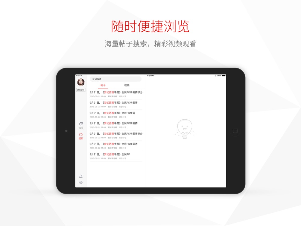√ 随时便捷浏览:海量帖子搜索,精彩视频观看;