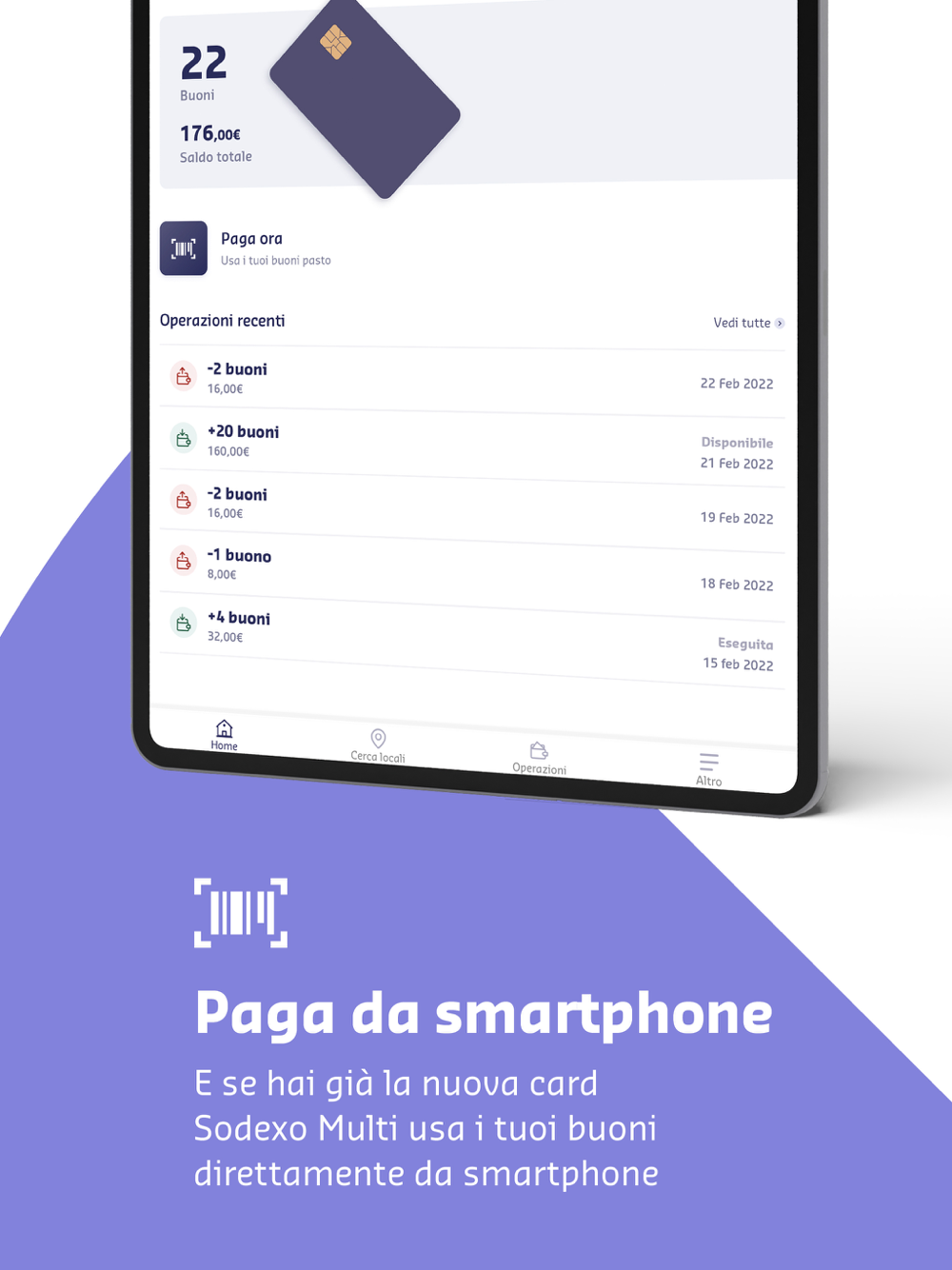 Se hai la card Sodexo Multi, puoi usare i tuoi buoni direttamente dal tuo cellulare nei negozi fisici e sui siti di e-commerce degli esercenti che hanno attivato il servizio.