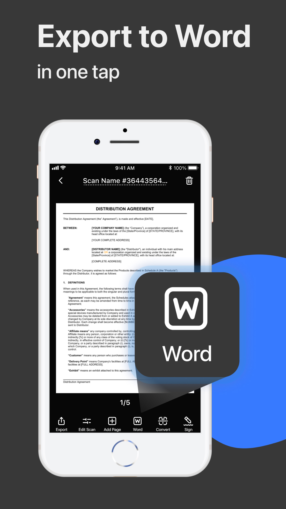 Become even more productive with e-sign and OCR. Add your signature to scanned documents with just a few taps in scanner pro. Use text recognition to convert any scan into text.