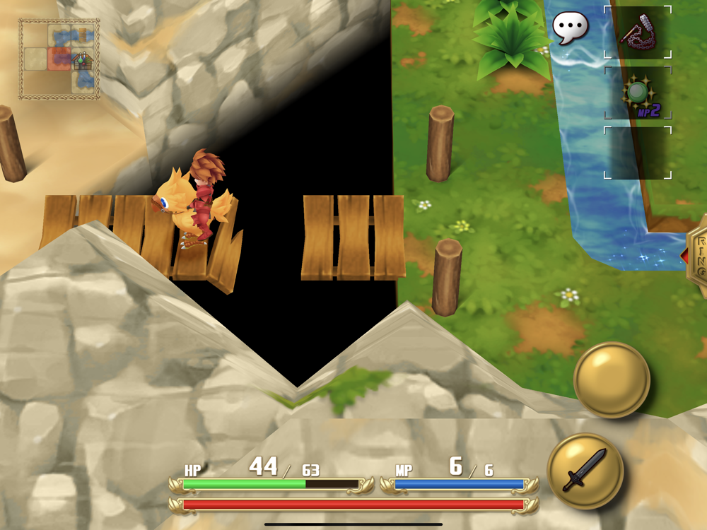 Player movement is achieved via a virtual joystick accessible anywhere on the screen. An auto-adjust feature has also been added so that even if your thumb strays from its original position, you will never lose control of the hero.