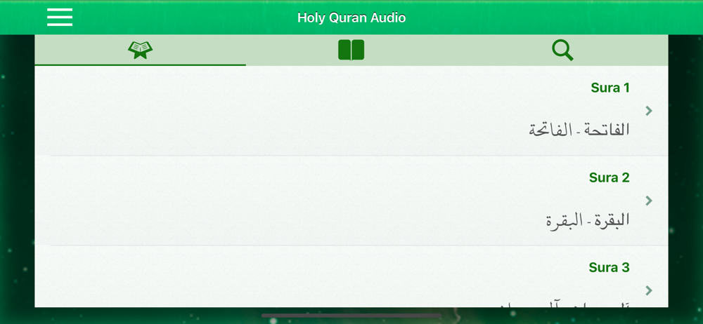 This application gives you the ability to read and listen to all 114 chapters of the Holy Quran on your device.
