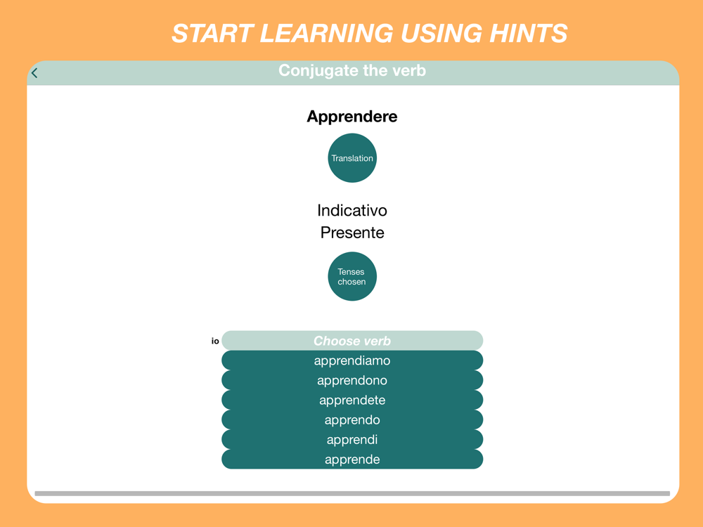 No internet connection? No problem. Study Italian verbs even while flying or in offline mode.