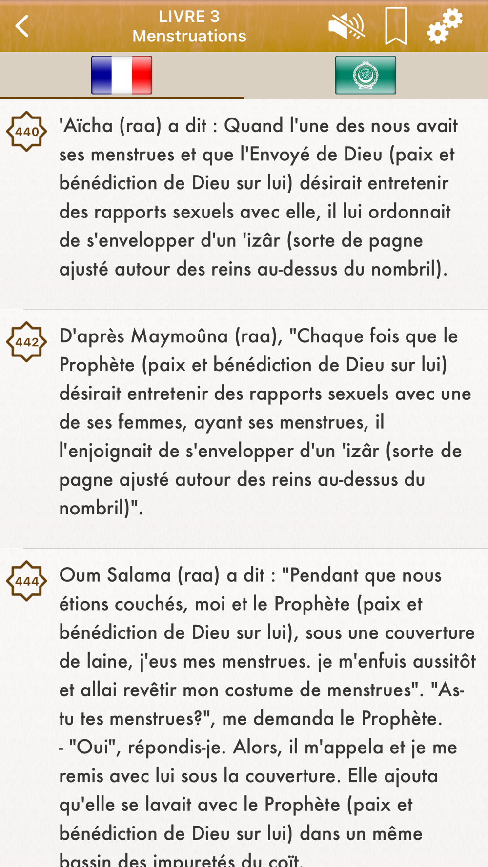 - 55 thématiques condensées sur plus de 1700 Hadiths en Français et +5500 Hadiths en Arabe