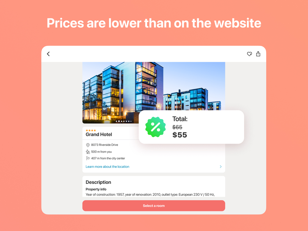 ZenHotels.com is a service for booking hotels online. Over 1.8 million hotels, hostels, and apartments. Using the app you may book a hotel room in any of 220 countries throughout the world. Through us, you may book a hotel without prepayment. The ZenHotels online hotel booking service will help you plan trips when you’re already on the road, save booking information, and call our support service for free. We guarantee each booking.