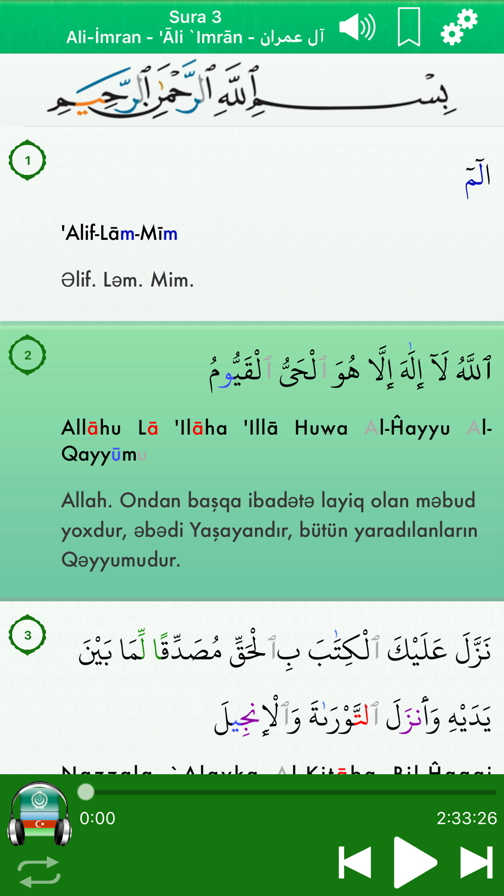 => No İnternet bağlantısı oxumaq və ya Quran dinləmək üçün tələb olunur
