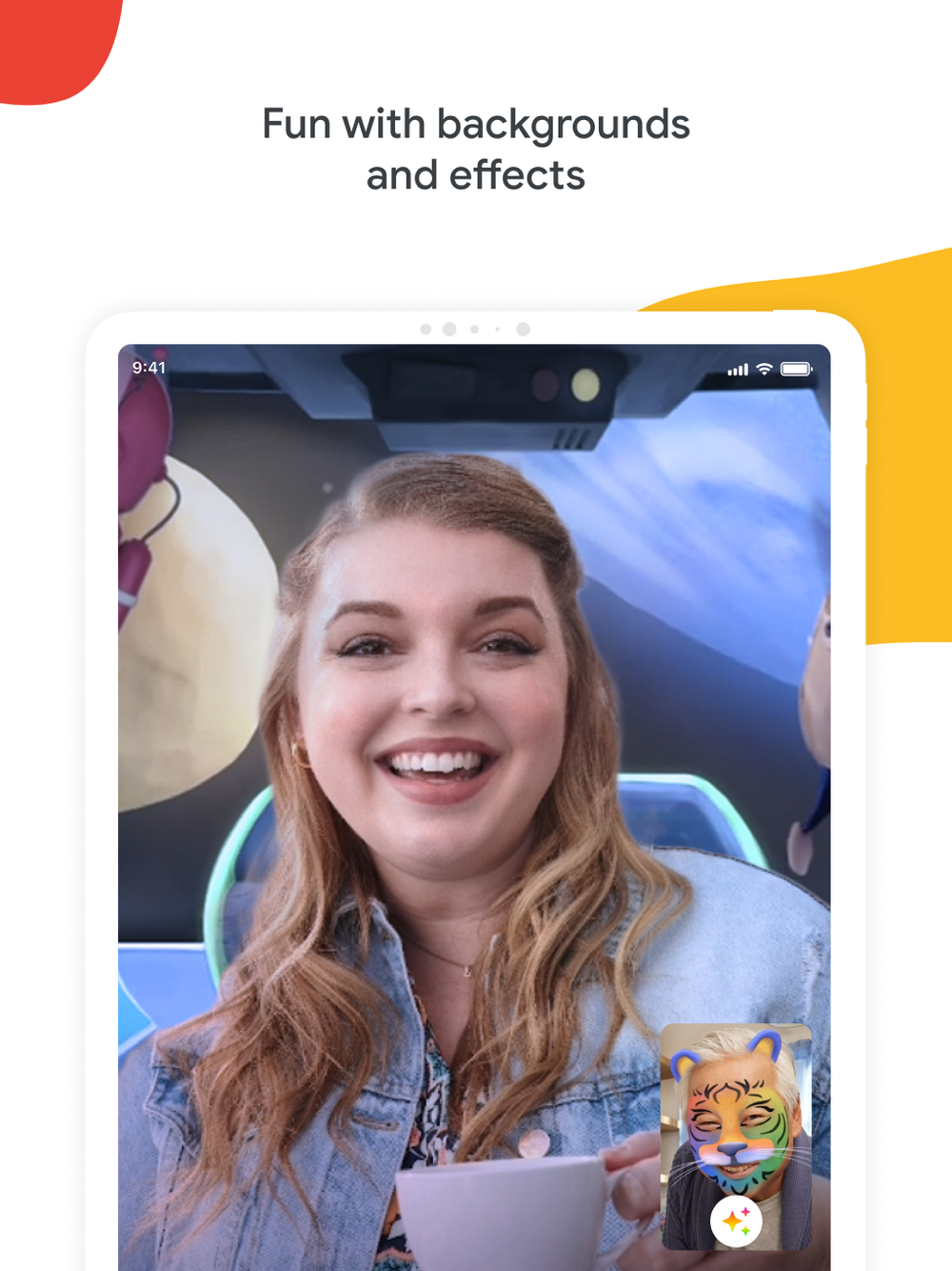 Make your call fun with family friendly features like effects, backgrounds, and reactions.