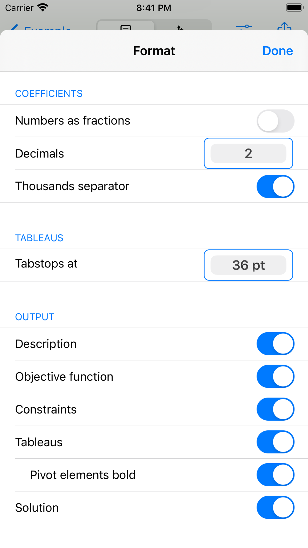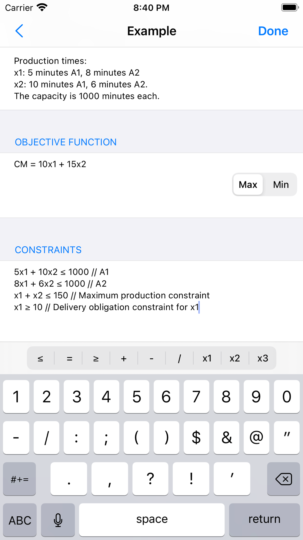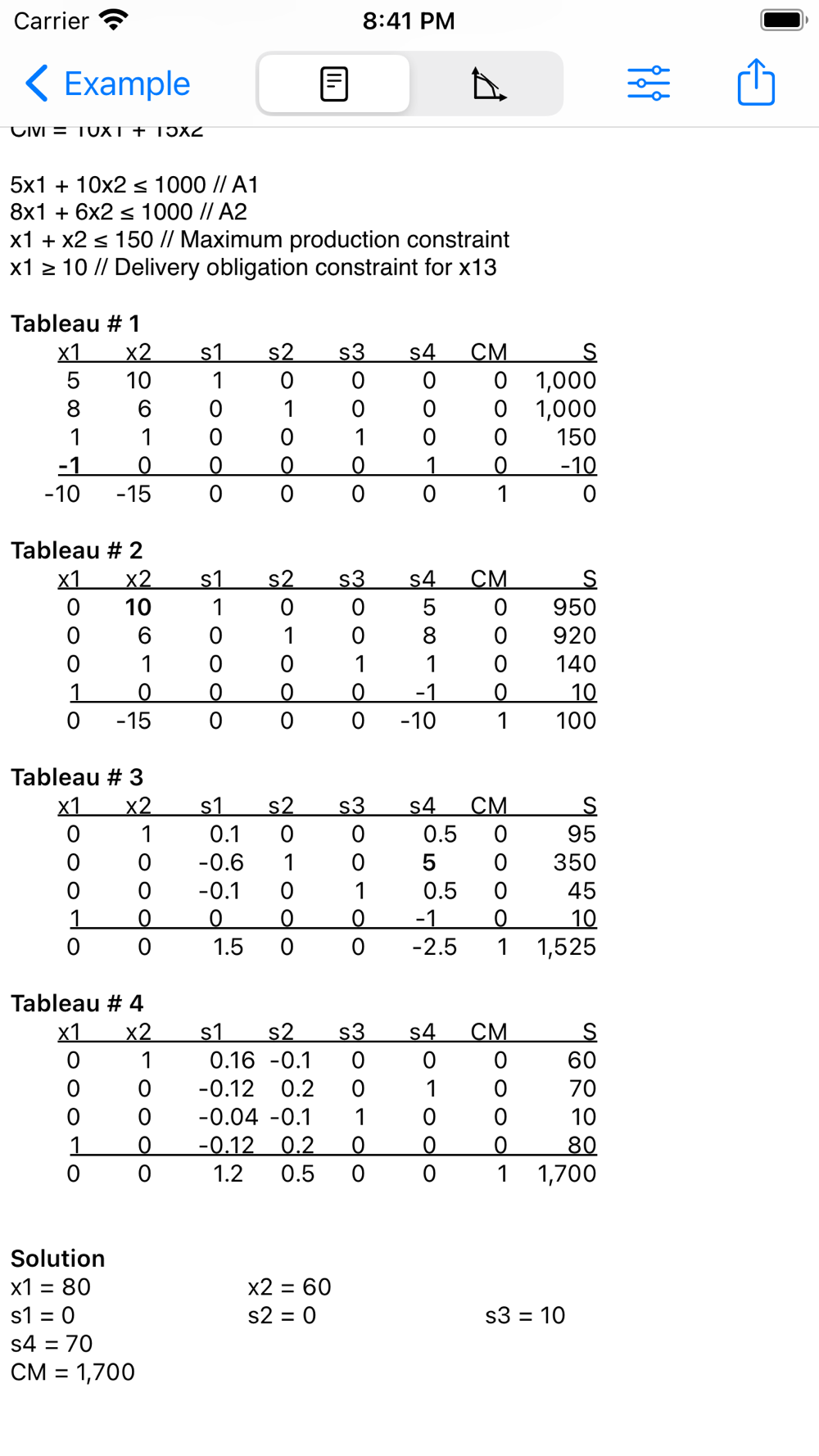 SimplexLP is the perfect learning companion for teachers (to set up problems) and students (to learn the Simplex algorithm). It is very easy to change coefficients and see how the solution varies.