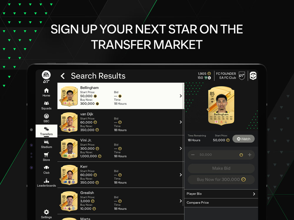 Buy and sell Players with the global Ultimate Team Community in the Transfer Market to help take your team to the next level.