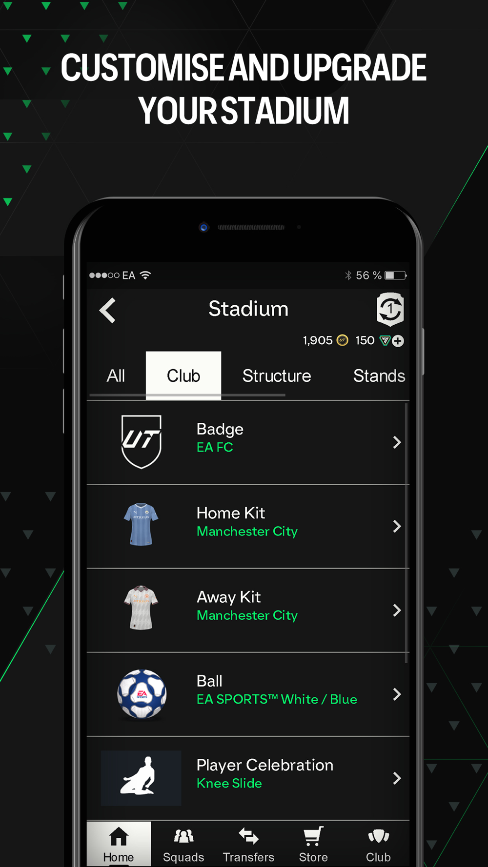 From walkout music to goal celebrations, pyrotechnics to Tifos, change every aspect to your tastes and to flaunt your achievements. Curate every aspect of your Stadium on the go directly in the Companion App.