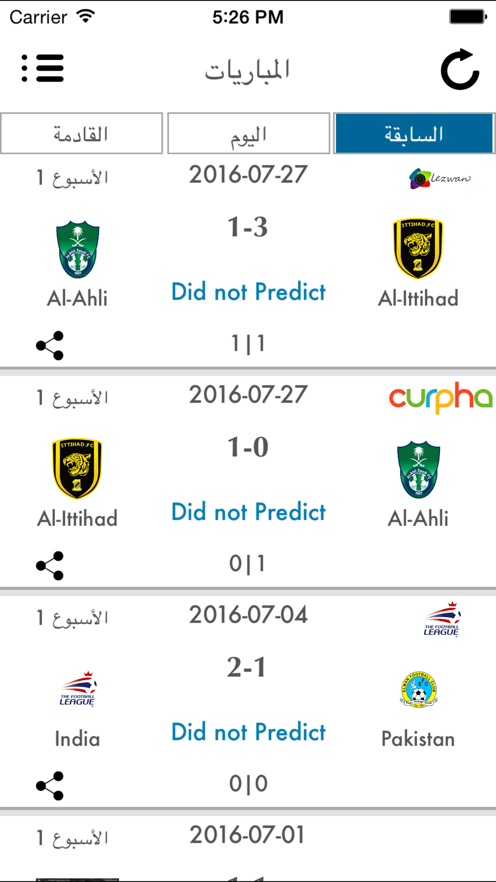 مشاهدة المباريات السابقة والقائمة والقادمة