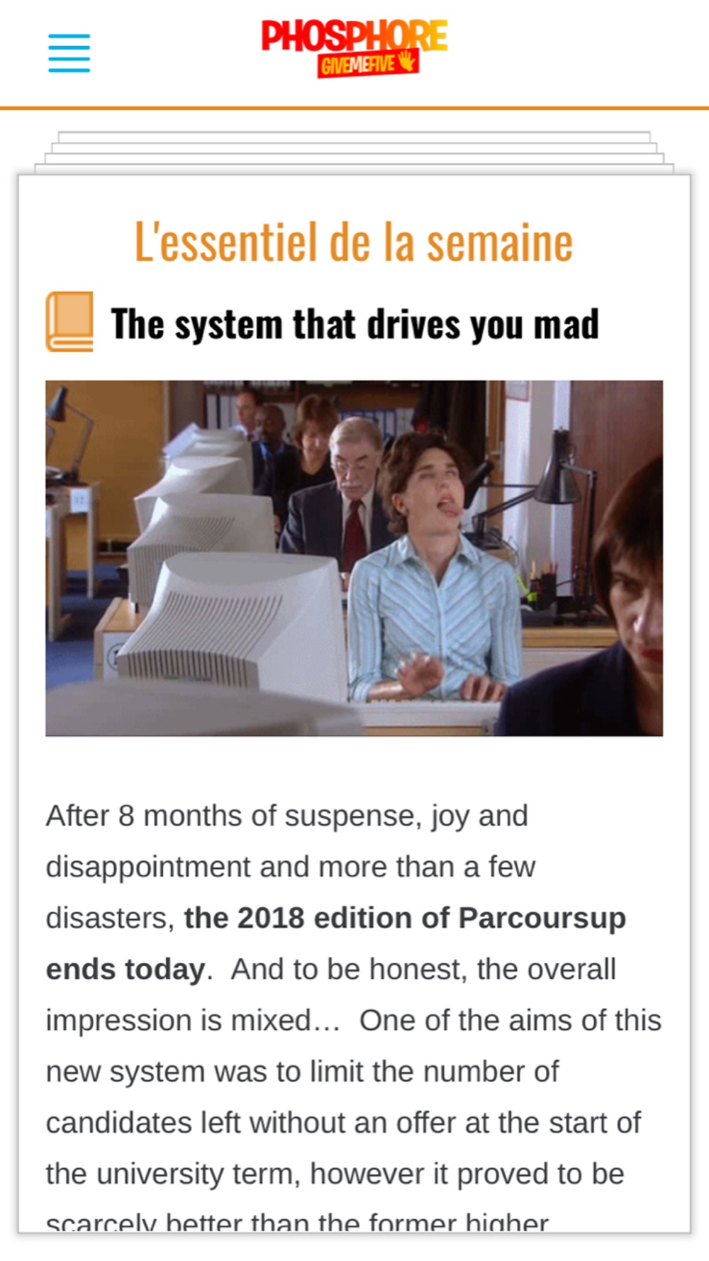 Où que tu sois, l’actualité vient à toi : GiveMe5 est disponible sur mobile, tablette et sur le web (http://giveme5.phosphore.com). Une notification t’informe dès que les 5 actus du jour sont disponibles.