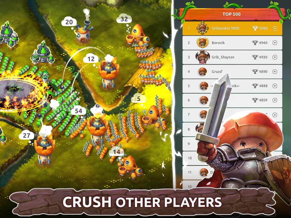 Challenge your friends or play with them - in true and fair online PVP matches for up to 4 people win the most skillful mushroom generals. Ranked leagues will show how you stack up against real competition.