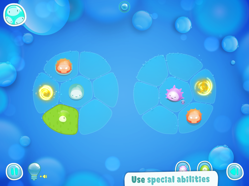 Battles take place in three locations - leaves, mold, and water. Each battleground has its own features: teleporters, bombs, or yeast which threatens to take over the whole board as it grows and grows.