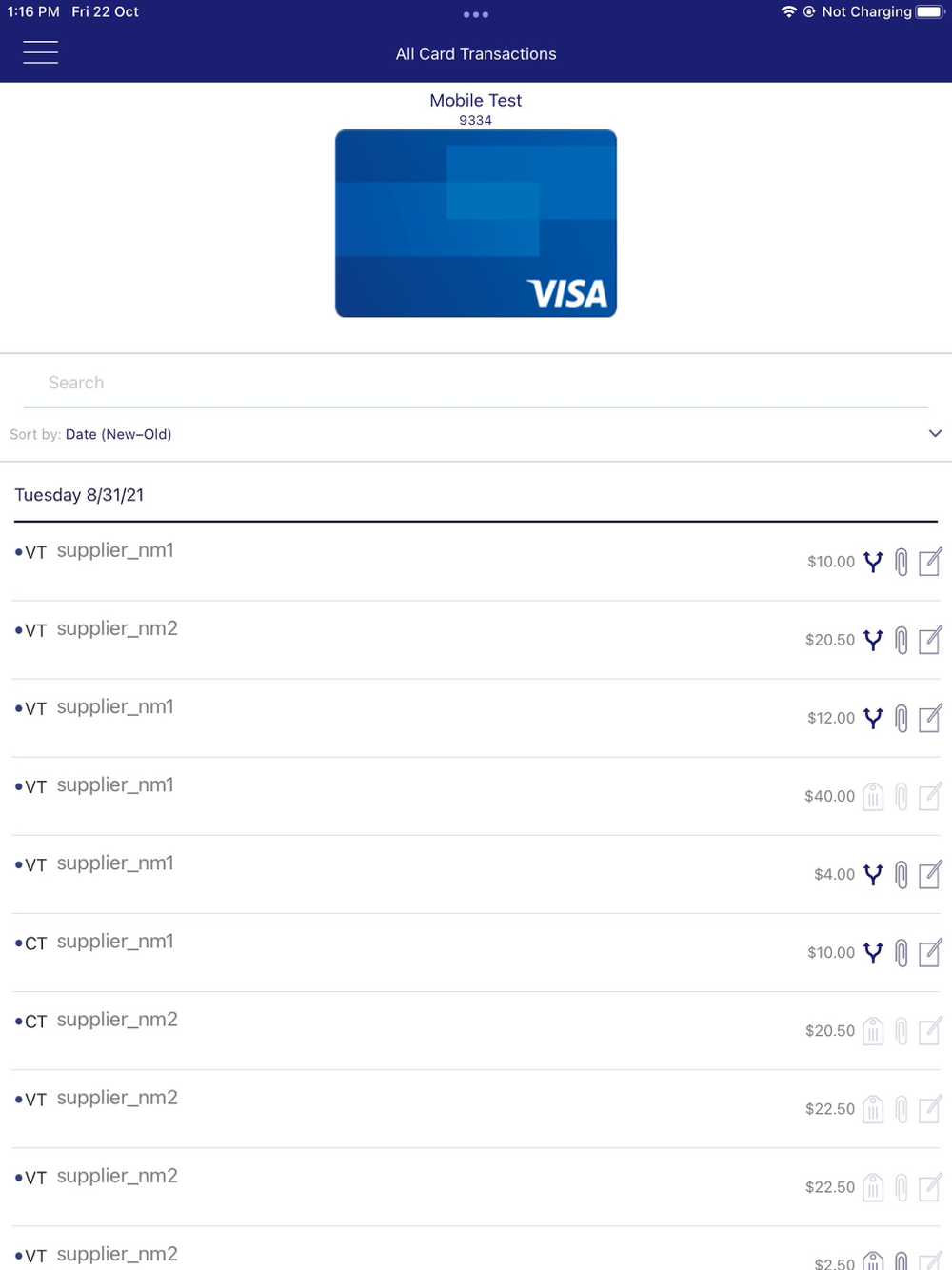 View card transactions rolled up at the company level or by a specific card account.