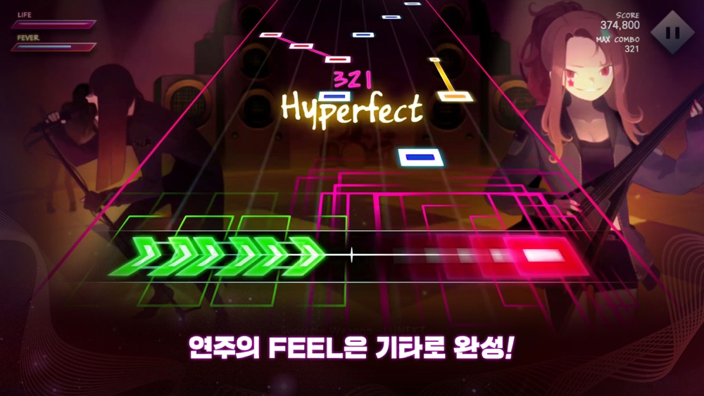 위에서 내려오는 노트 하나하나가 해당 음악의 실제 음들이고, 리듬에 맞춰 노트를 눌러 음악을 완성해 보세요.