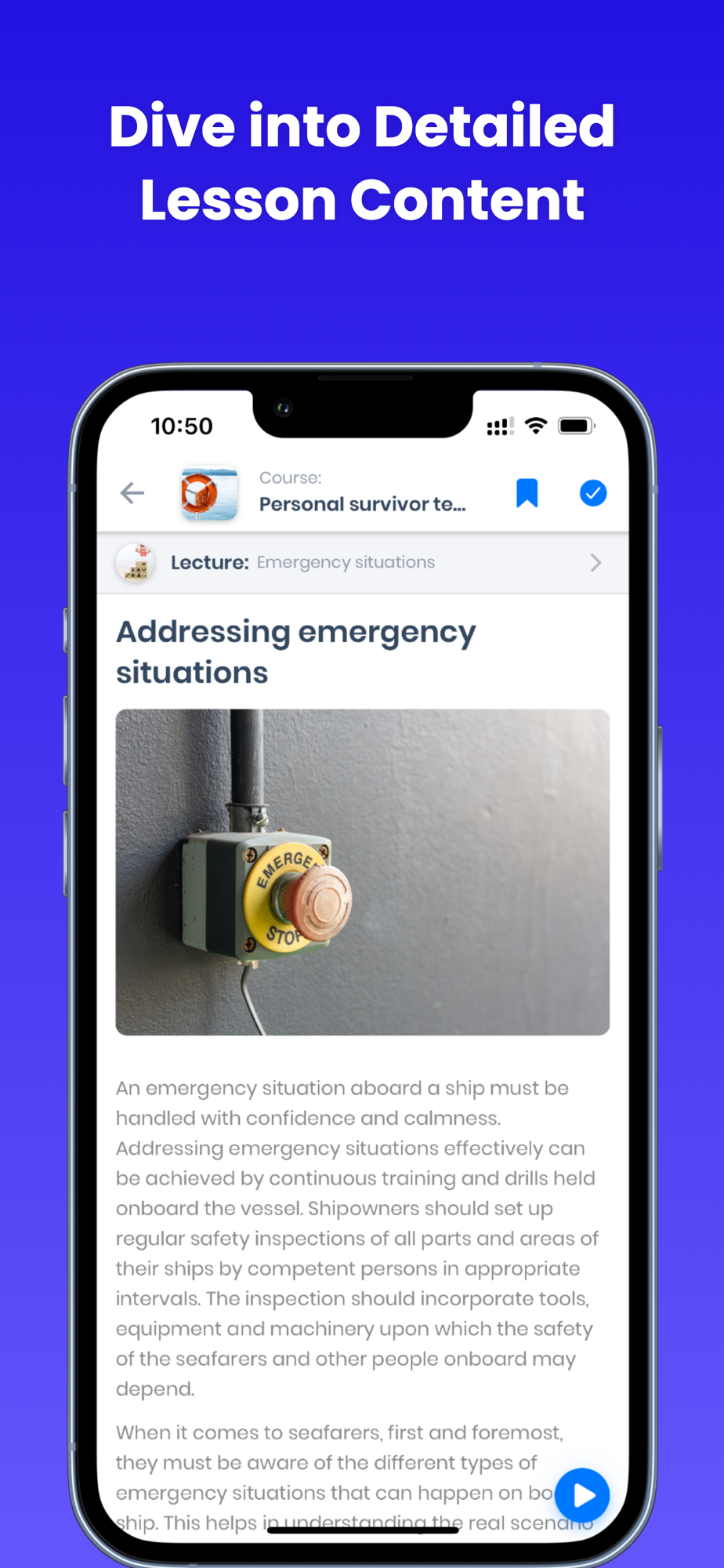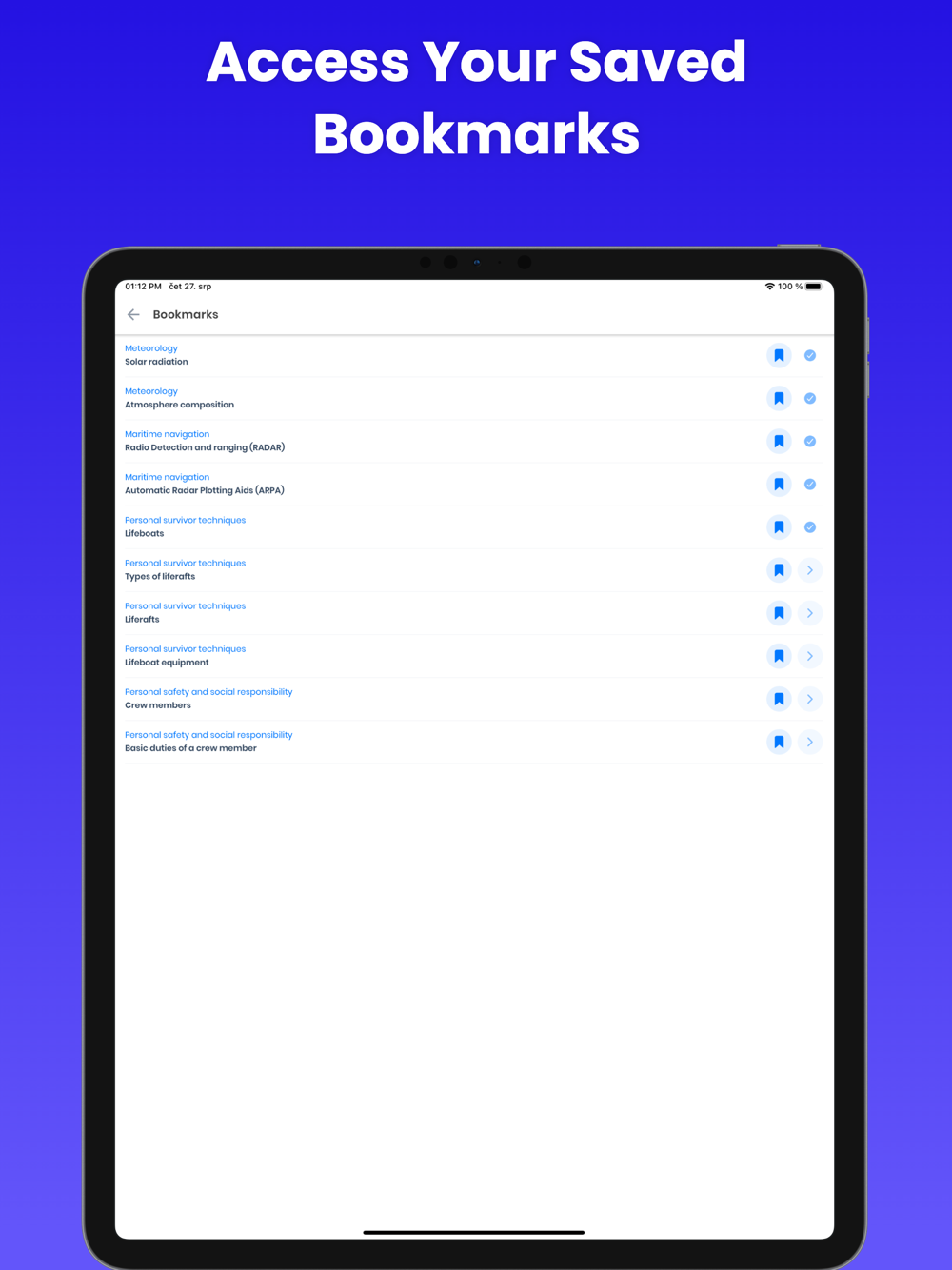 Organized Knowledge - Our system allows you to bookmark articles, mark them as complete, and track your progress. Discover STCW courses that form part of the compulsory basic safety training for all seafarers, along with additional courses to expand your maritime knowledge – from basic maritime English to collision regulations (COLREGs).
