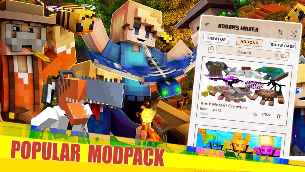 With Minecraft AddOns Maker MAM you can mod Minecraft with your creativity. MCPE game accept your addons or mods by mcword, mcpack, mcaddon... and we have it all.