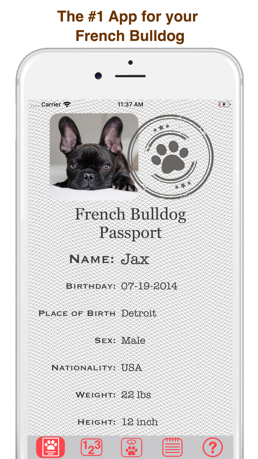 - Features a passport for your French Bulldog
