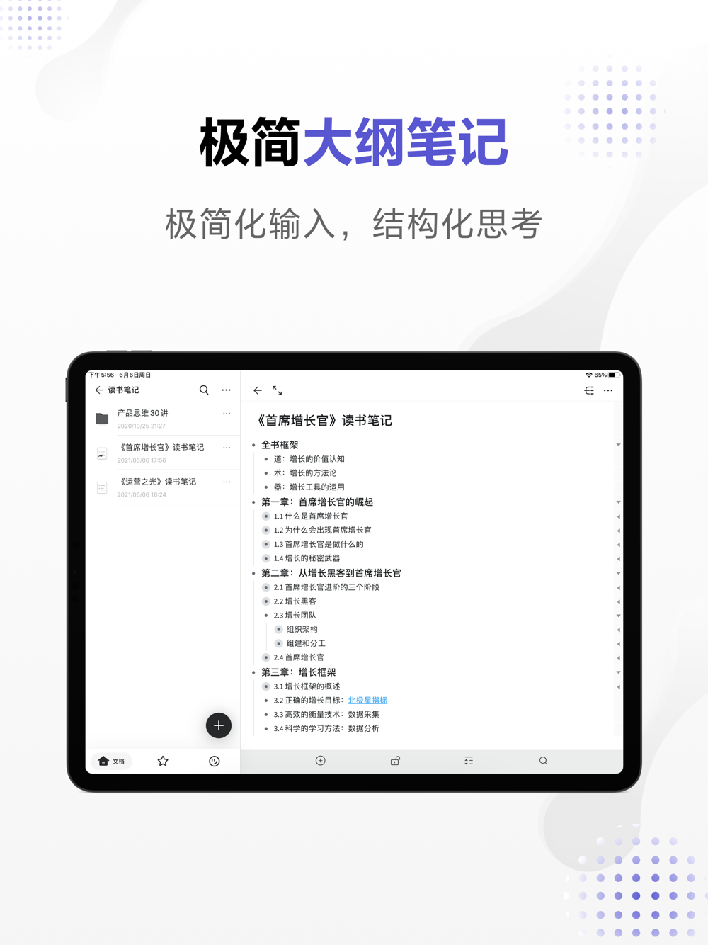 幕布是一款清单式的笔记工具,用更高效的方式和清晰的结构来记录笔记、管理任务、制定工作计划、头脑风暴。