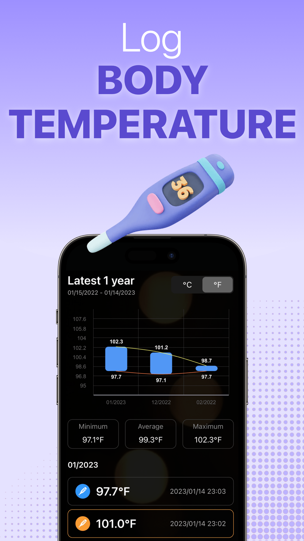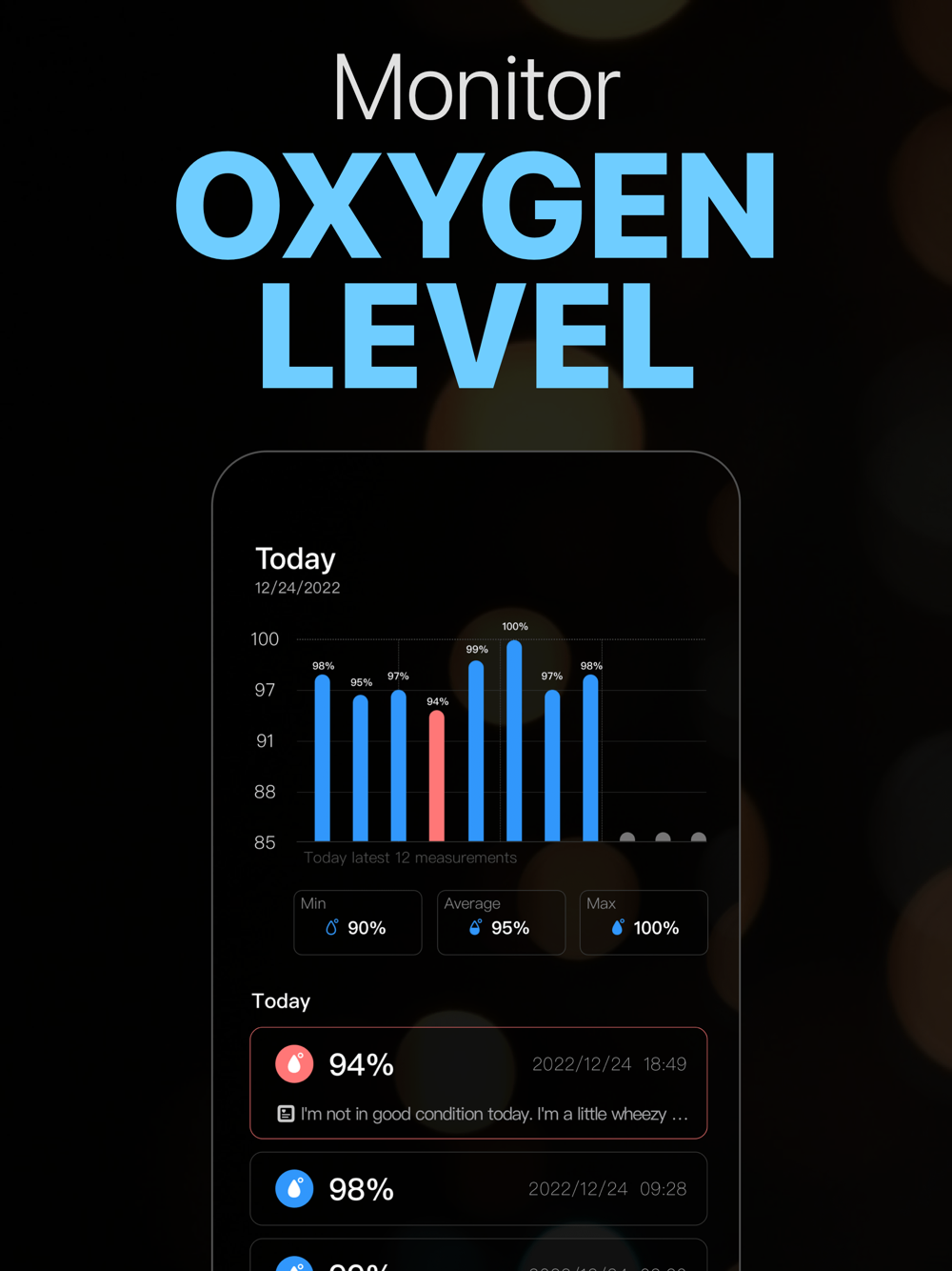 3. Record and track your blood pressure and blood oxygen level saturation and body temperature anytime and anywhere.