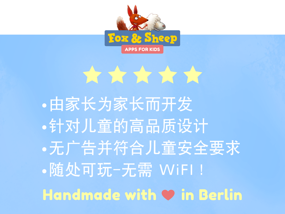 我们是来自柏林的儿童 App 工作室,为 2-8 岁的儿童开发高品质的游戏。