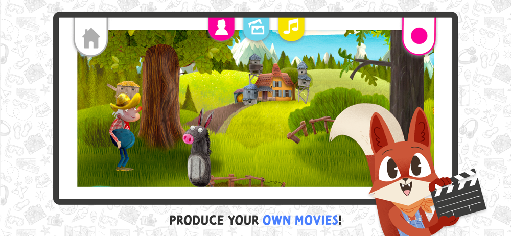 With our App "Movie Adventure" you can choose backgrounds, characters and music to shoot your very own movie!