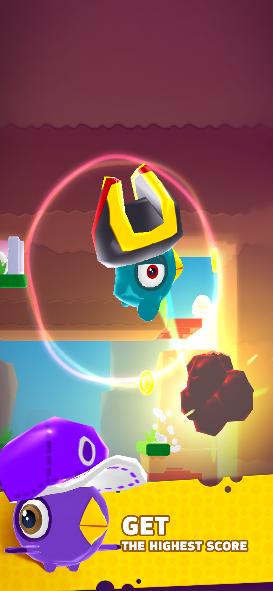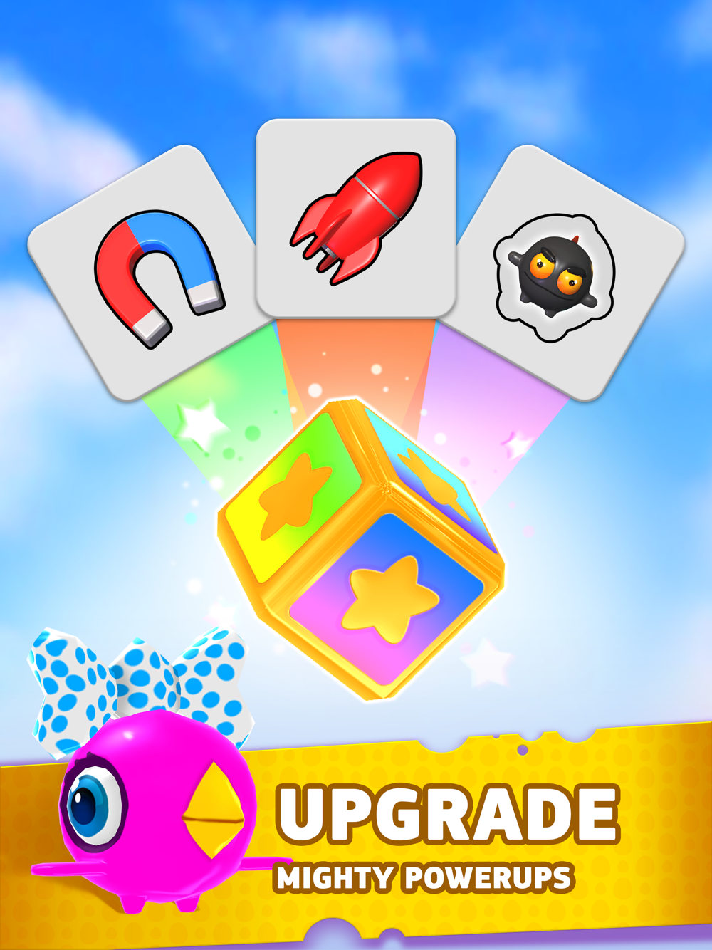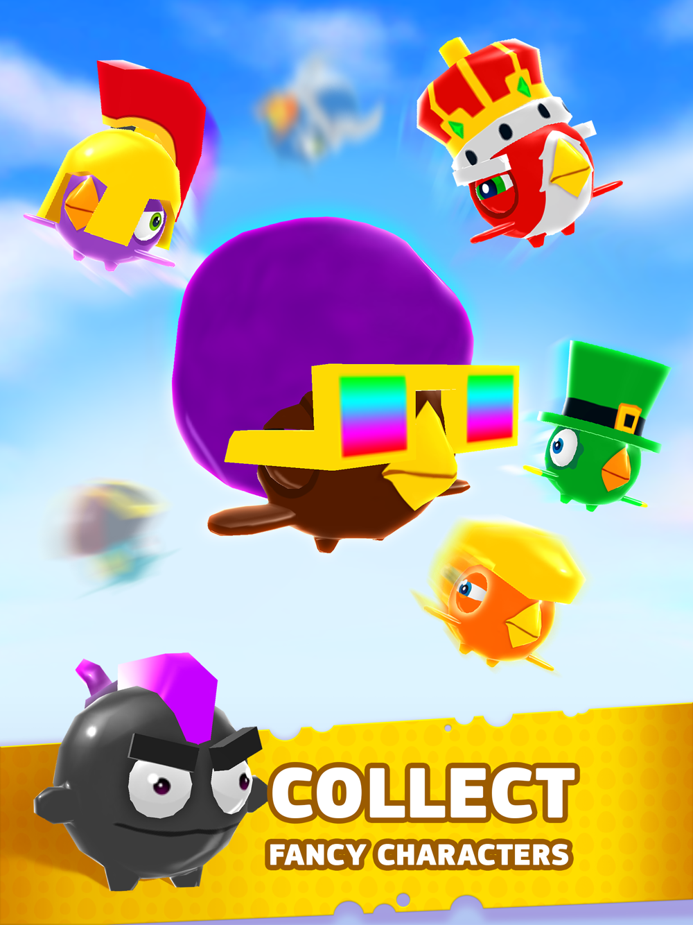 Bounce back and forth collecting eggs and avoiding bombs, use various powerups, open new characters, get amusing stickers, compete with your friends in weekly tournaments and have tons of fun!