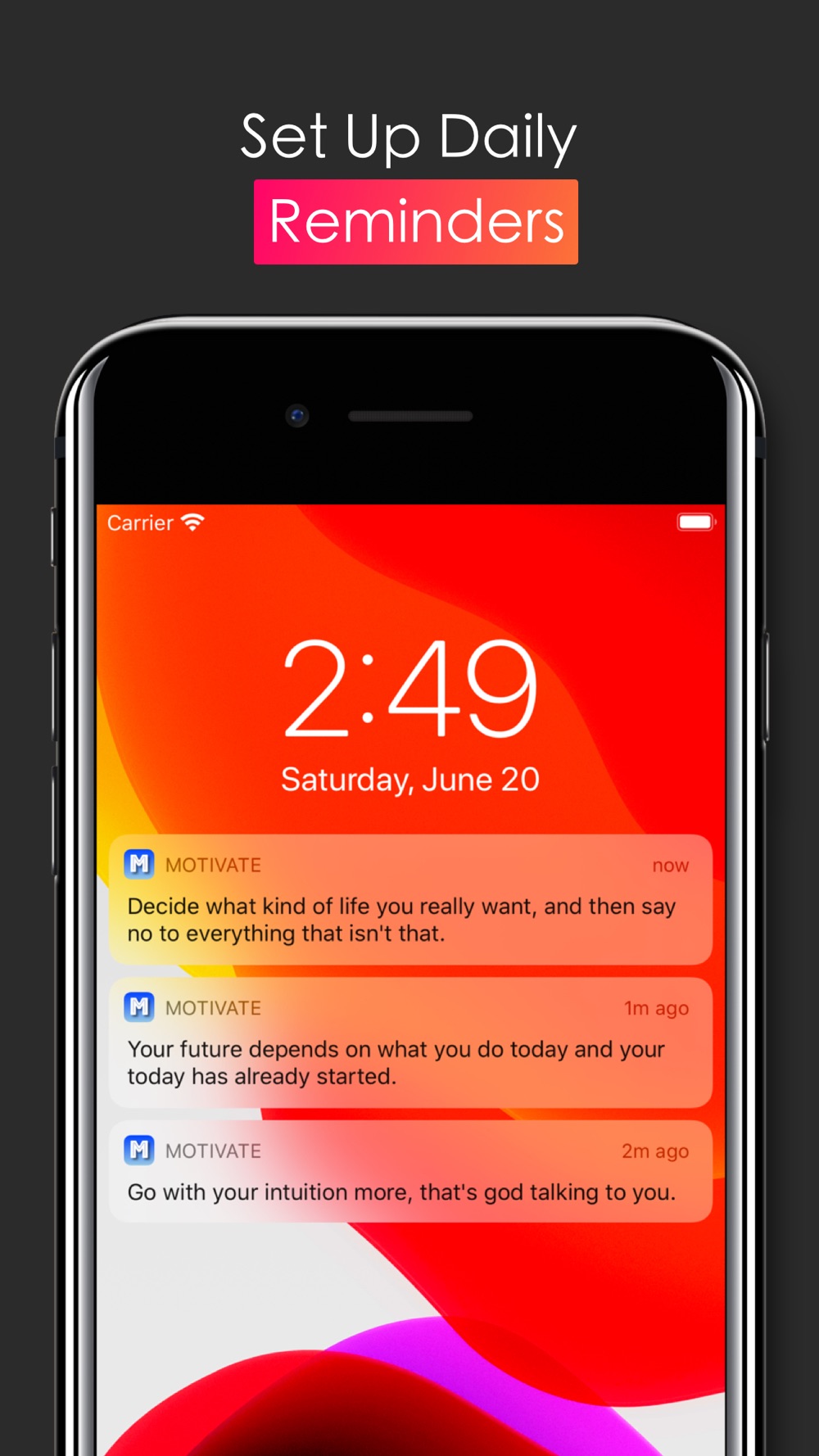 Motivate contains thousands of Motivation quotes which will suits your daily life to be Motivated and with motivation reminders you will always get new Positive quotes. Its is an internal process that makes a person move toward a goal and work hard to achieve success in life.
