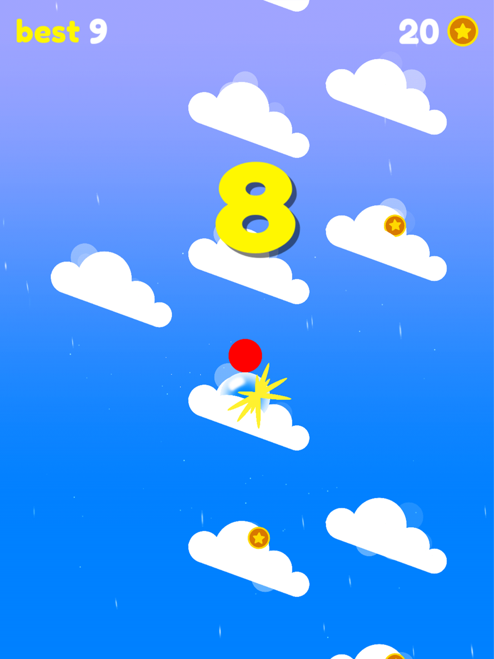 Raindrop offers a wonderfully intuitive gameplay experience, requiring just a tap on the screen to control the rotation of the enchanting clouds. Your mission is to guide the raindrop with finesse and precision, ensuring it lands gracefully on as many clouds as possible, all while aiming to accumulate an impressive tally of score points.