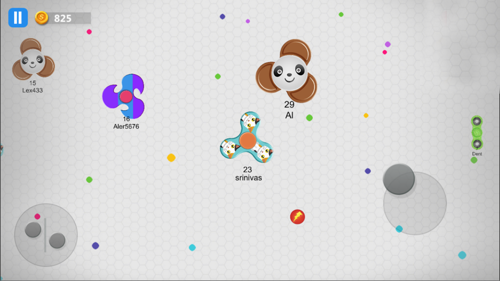 Play online in free-for-all action and use splitting, shrinking and dodging tactics to catch other players - or avoid them! Defend your territory against others spinners and become the biggest mass. Don't get hit and control your fidget-spinner and fight with other spinners to stay longer! Survive long enough to become the biggest one in this games!