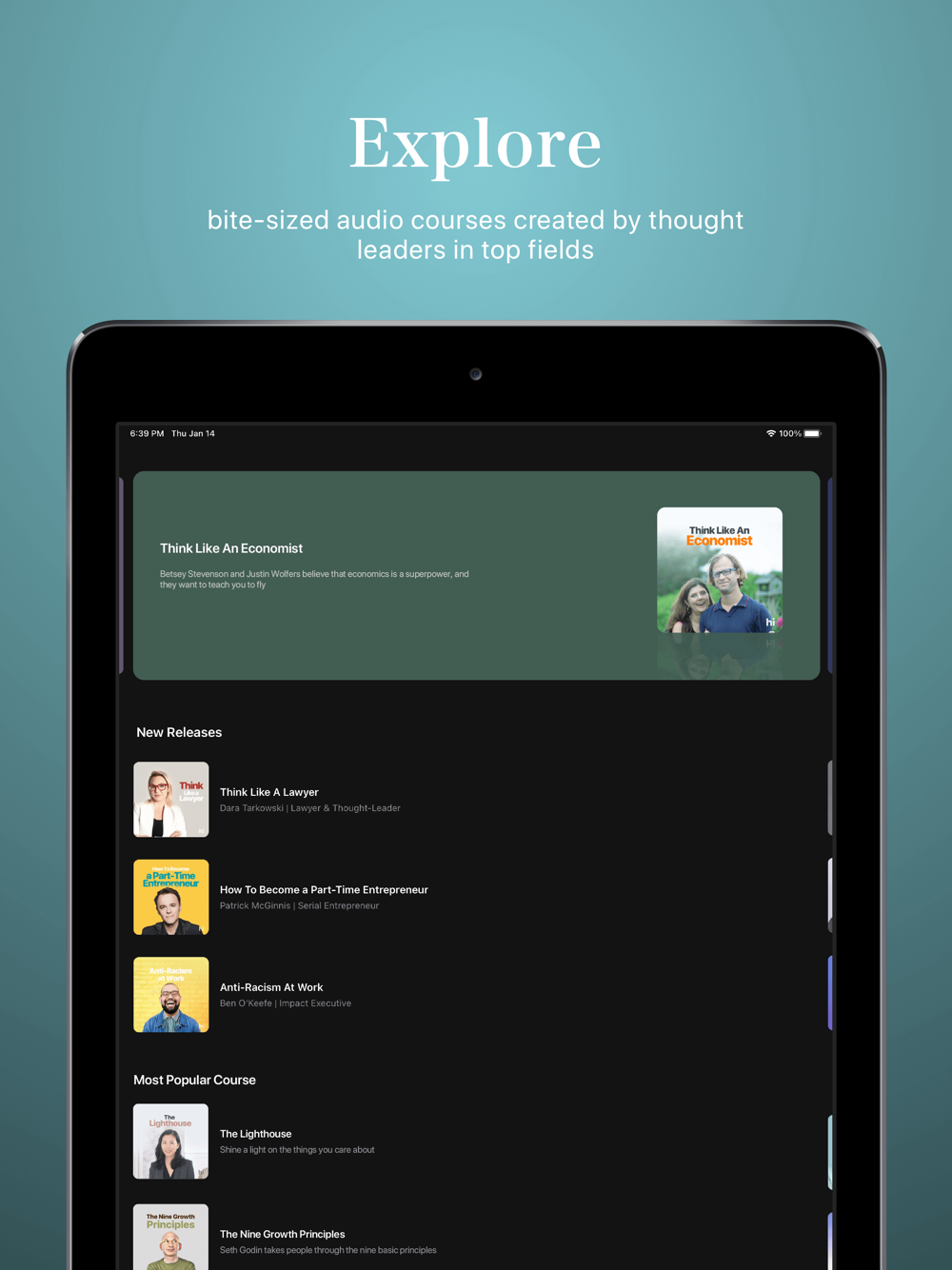Our stories are designed to deliver the most useful and important insights to help you achieve your personal and professional goals. And our courses are divided into bite-sized, actionable lessons from experts like Mark Manson, Arianna Huffington, and Tim Ferriss.