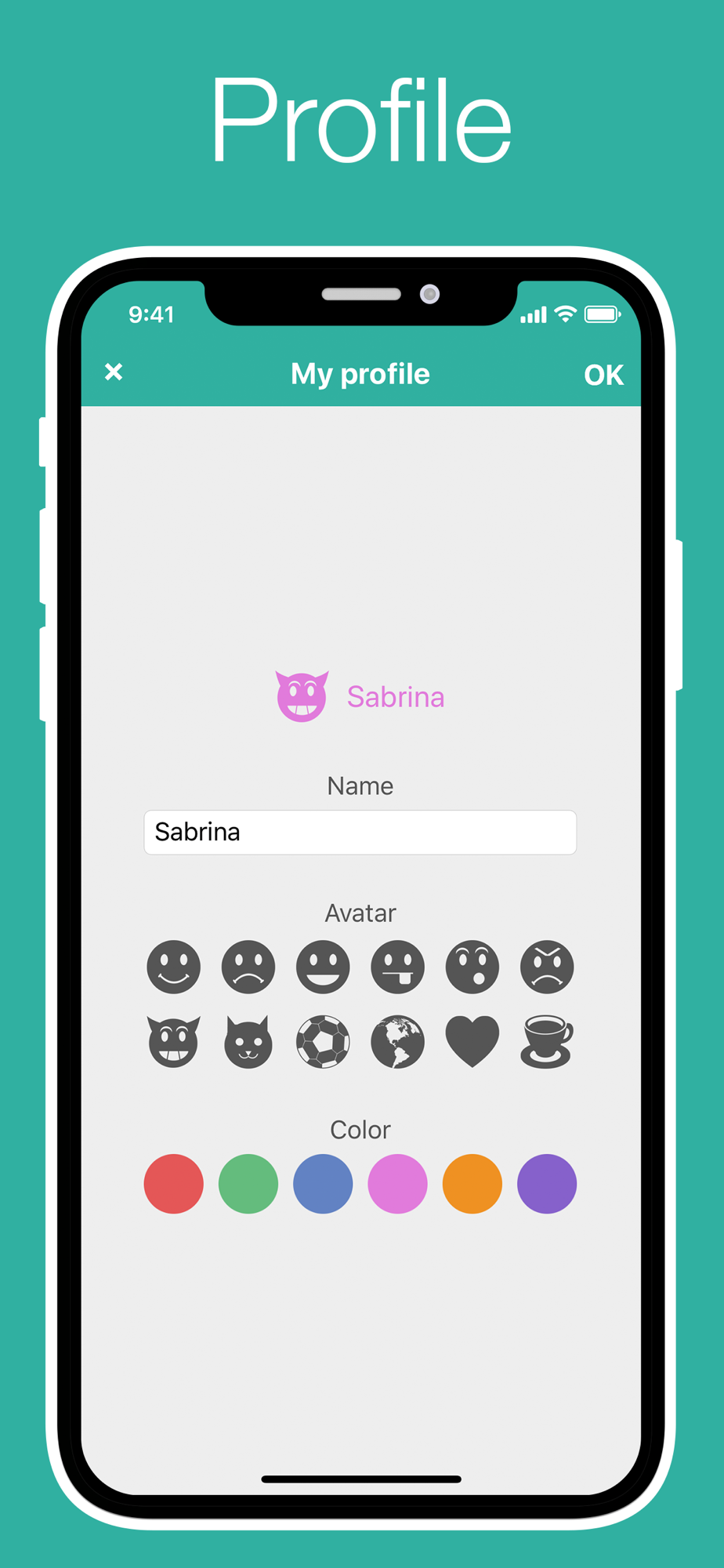 Easily edit your profile: username, avatar, color.