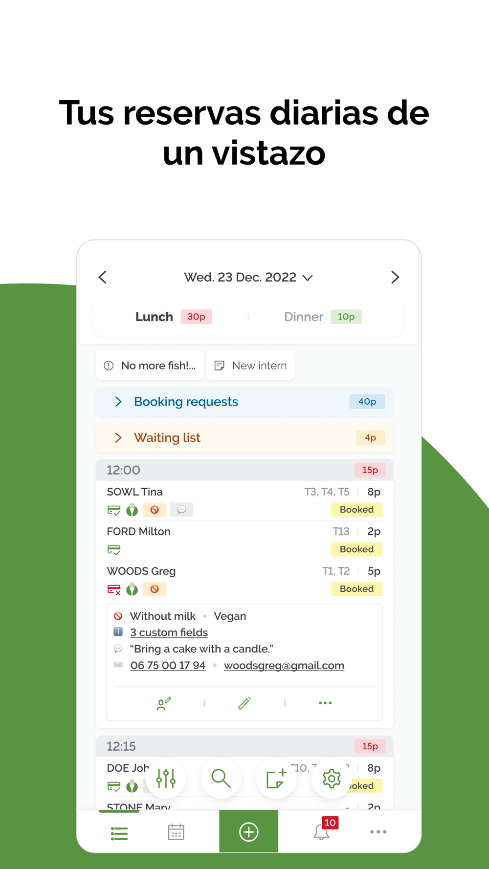 Navega por la información esencial relativa a tus reservas y tus comensales. Accede a sus peticiones, prepara su llegada y ofréceles una experiencia personalizada.
